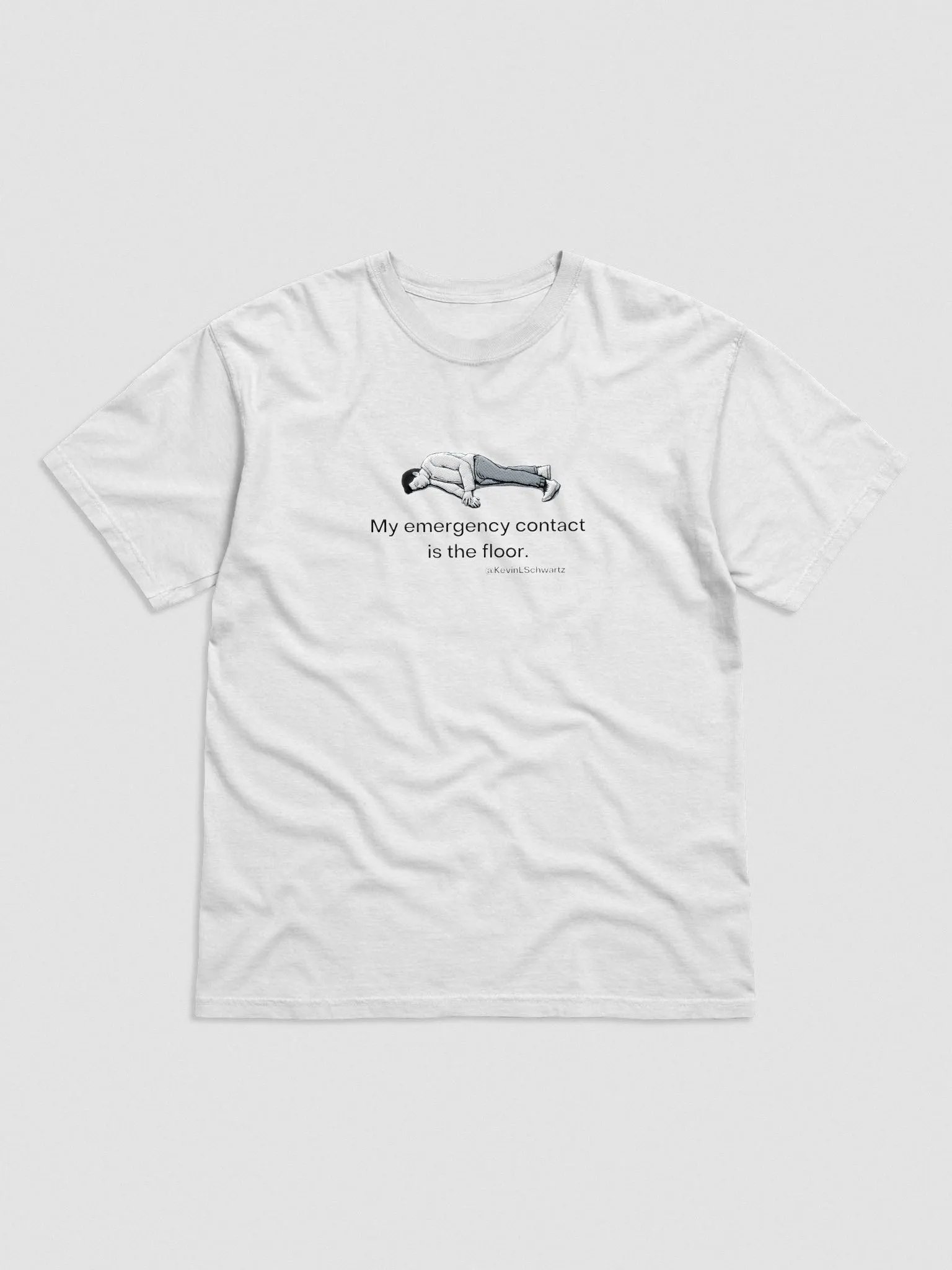 "My emergency contact is the floor." T-shirt (Embroidered)